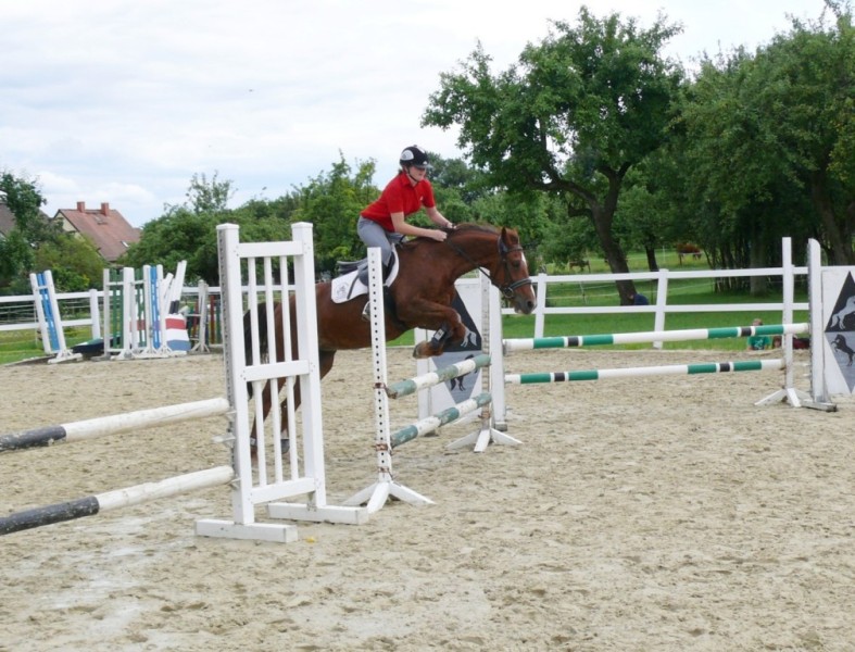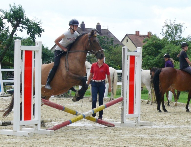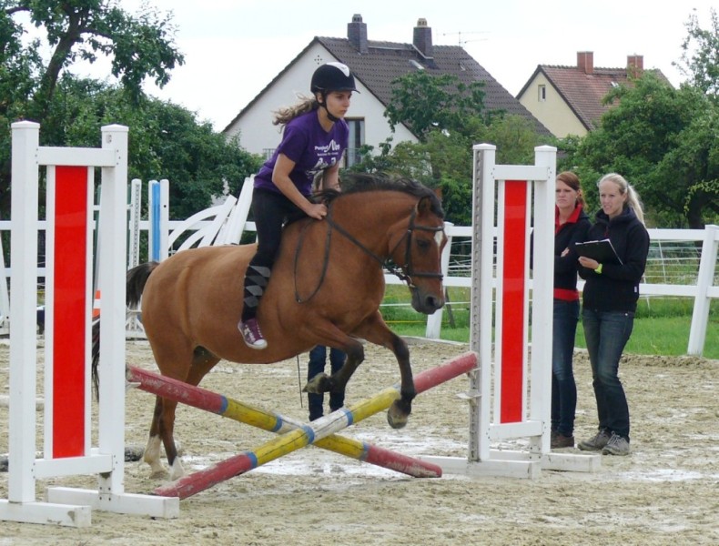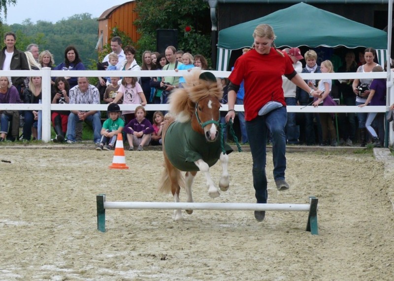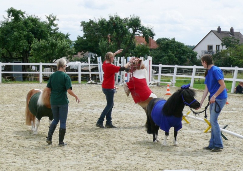 Dann wurde ein Springparcours aufgebaut, den sechs junge Reiterinnen mit ihren Ponys überwinden mussten. Den ersten Platz belegte hier Fee Krummeich, ihr folgten Natascha Zinn und Michelle Reißky auf Platz zwei und drei. Angelique Wagner wurde Vierte und Vivien Graf sowie Jasmin Mäser belegten den fünften Platz.