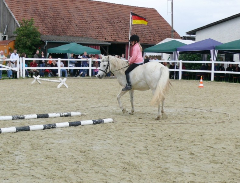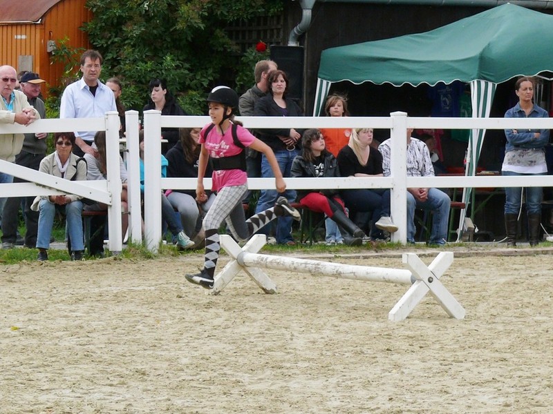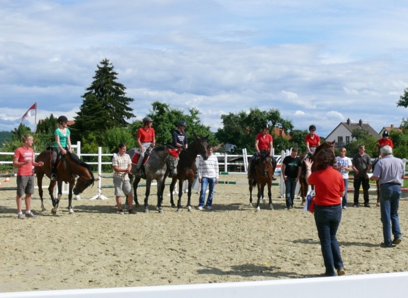 Noch ein Reiterwettbewerb für die Reitschüler stand auf dem Programm. Auch hier wurde wieder der Sitz und die Einwirkung der jungen Reiterinnen bewertet. Paula Philipps stand hier als Siegerin ganz vorne. Platz zwei belegte Gloria Kaiser, Platz drei Jacqueline Wiechmann. Ihr folgten Paula Stöck, Anna Stöck, Tamara Schmidt, Michelle Latka, Jessica Grolig und Maren Wagner. Die Richterinnen Patricia Semmel und Sina Kocher lobten bei der Siegerehrung den guten Sitz der Reiterinnen und gaben den Kindern Tipps, was sie eventuell noch verbessern können.