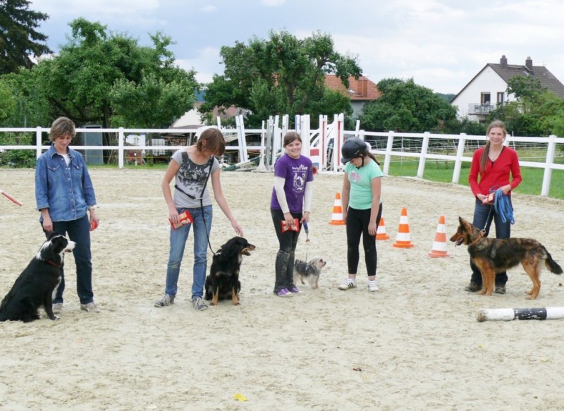 Wie in jedem Jahr hatten einige Besucher ihre Hunde dabei. Spontan fanden sich vier Frauchen, die mit ihren Lieblingen beim Hundesport starteten.