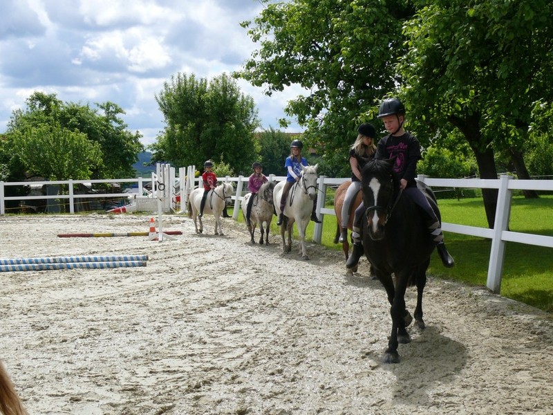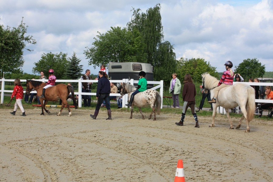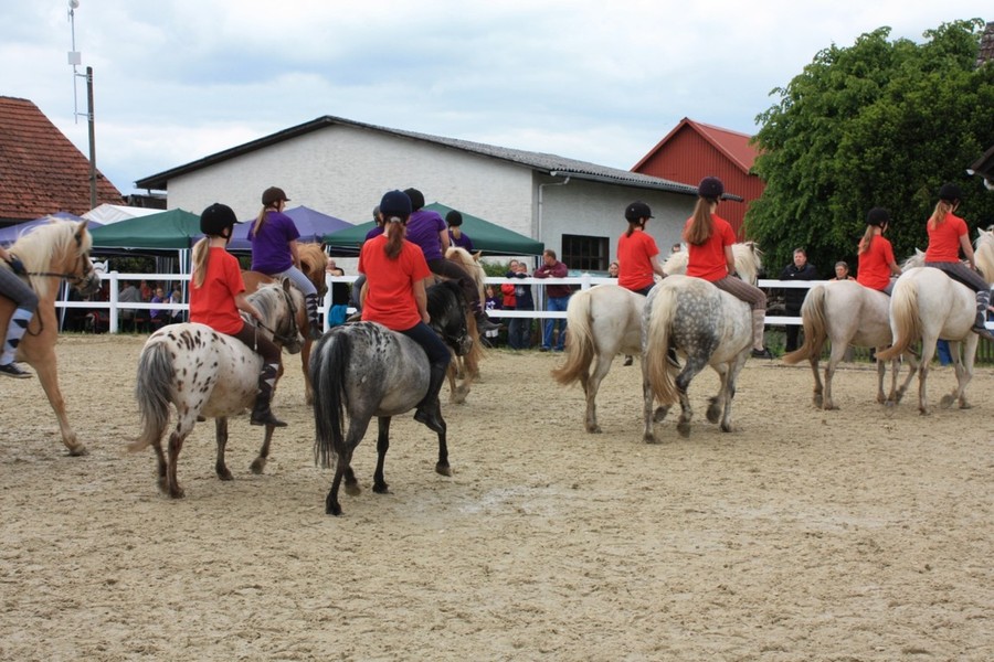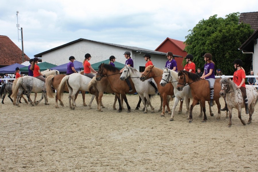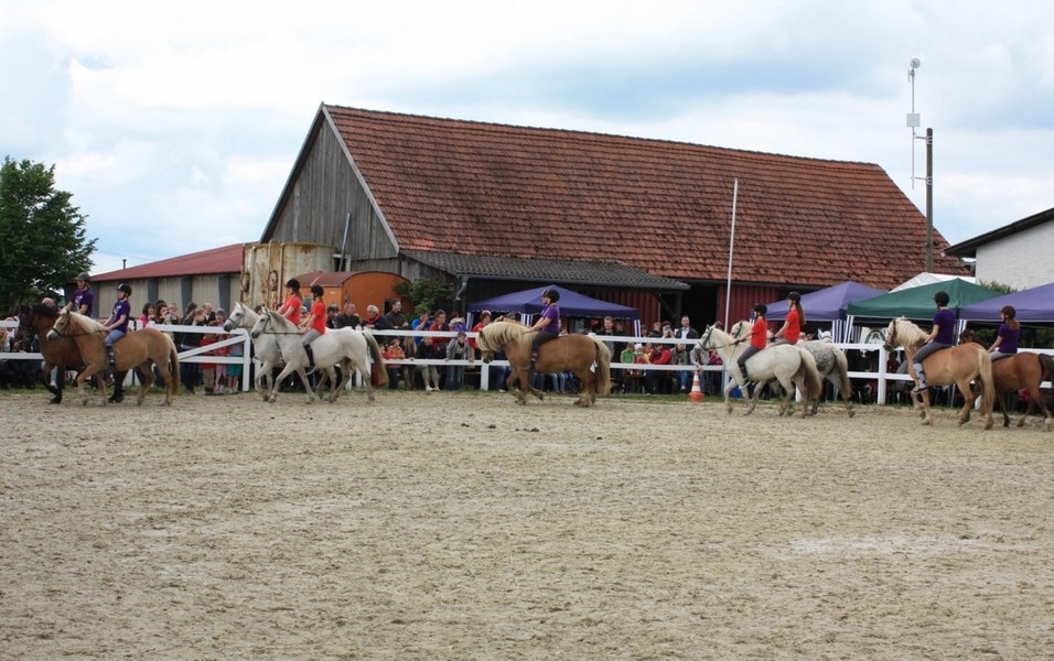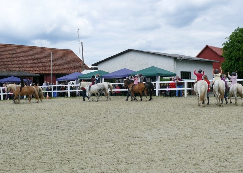 Eine Augenweide war die von Stefanie Nos einstudierte Pony-Quadrille. Danach zeigten die Jüngsten ihr Können beim Fliegerlied. Beim anschließenden Reiterwettbewerb erhielt Tessa Volz auf Jamaika den Siegespokal. Ebenfalls einen Pokal für den zweiten und dritten Platz bekamen Elisabeth Wäss auf Jinka, Noemi Günther auf Confetti und Max Weidenhaus auf Ötzi.