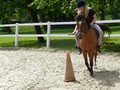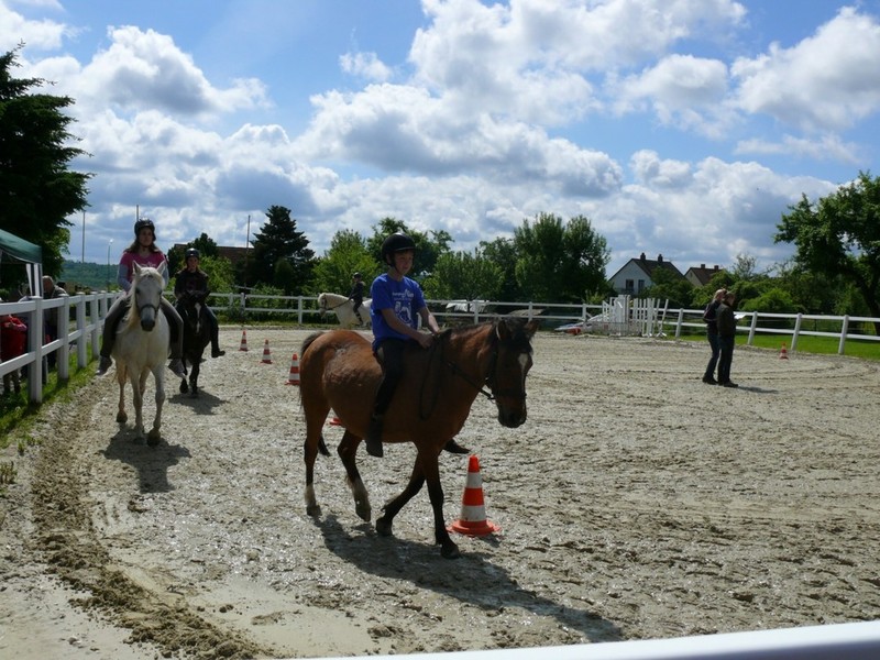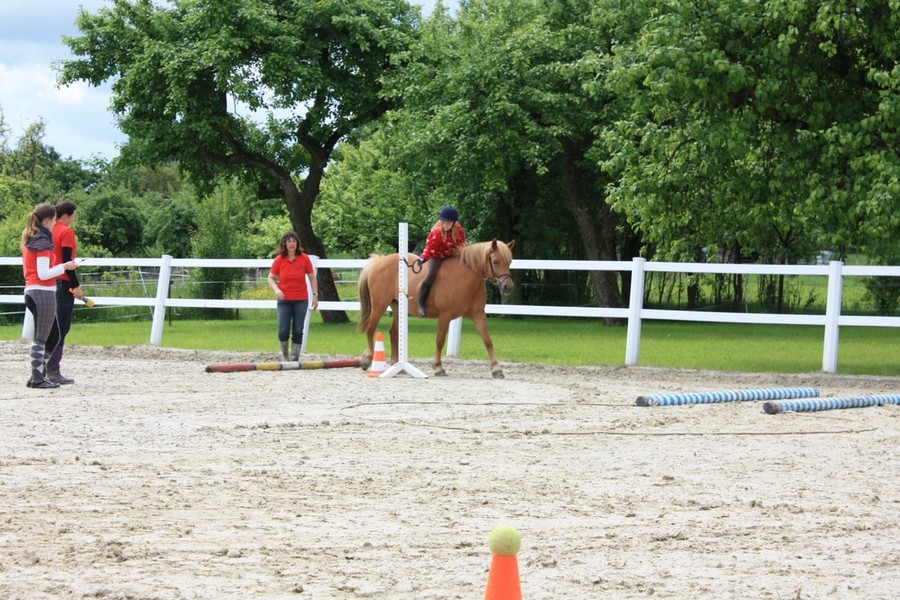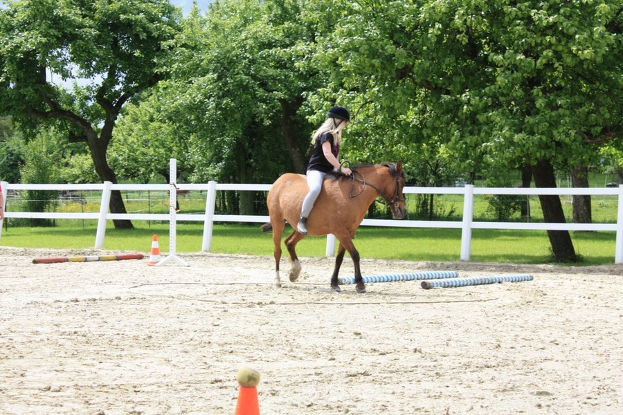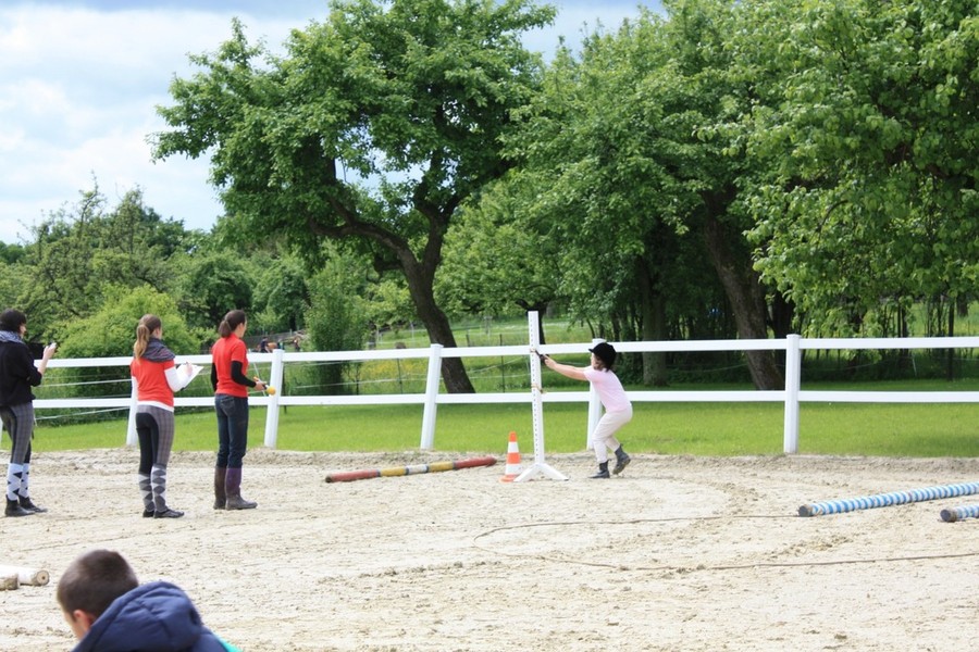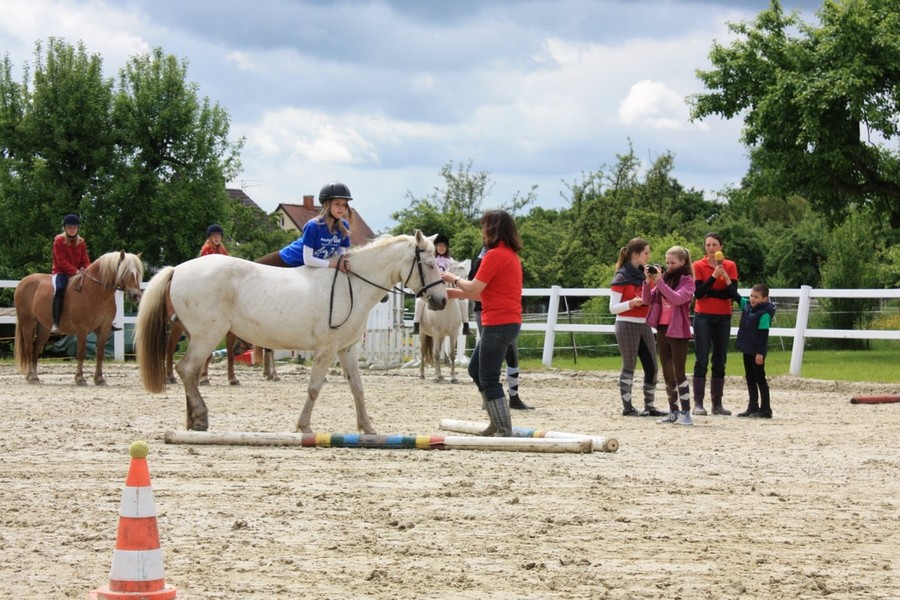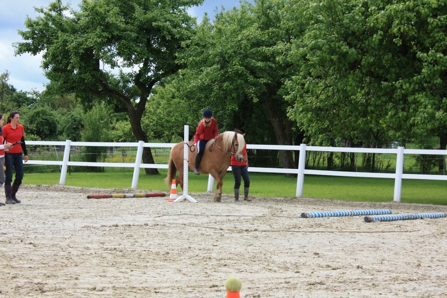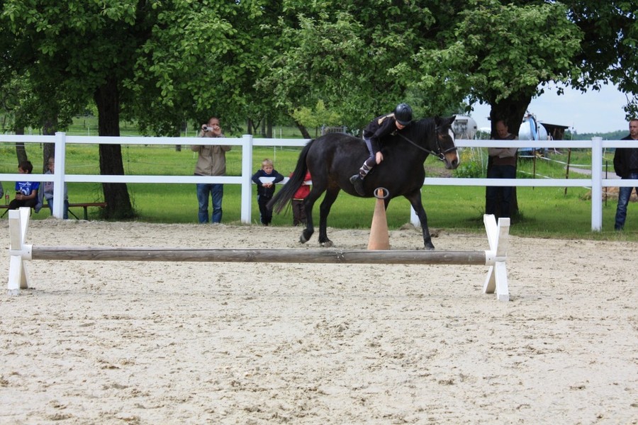 Beim Reiterspiel „Jump and run“ war Geschicklichkeit und Schnelligkeit von Reiter und Pony gefragt. Als Schnellste um Kegel und durchs Schlüsselloch erhielt Maren Wagner auf Jamaika den Siegespokal. Zweitschnellste war Marie Luise Wäss mit Jinka , Platz drei belegten Lara Bechtold und Sheila.