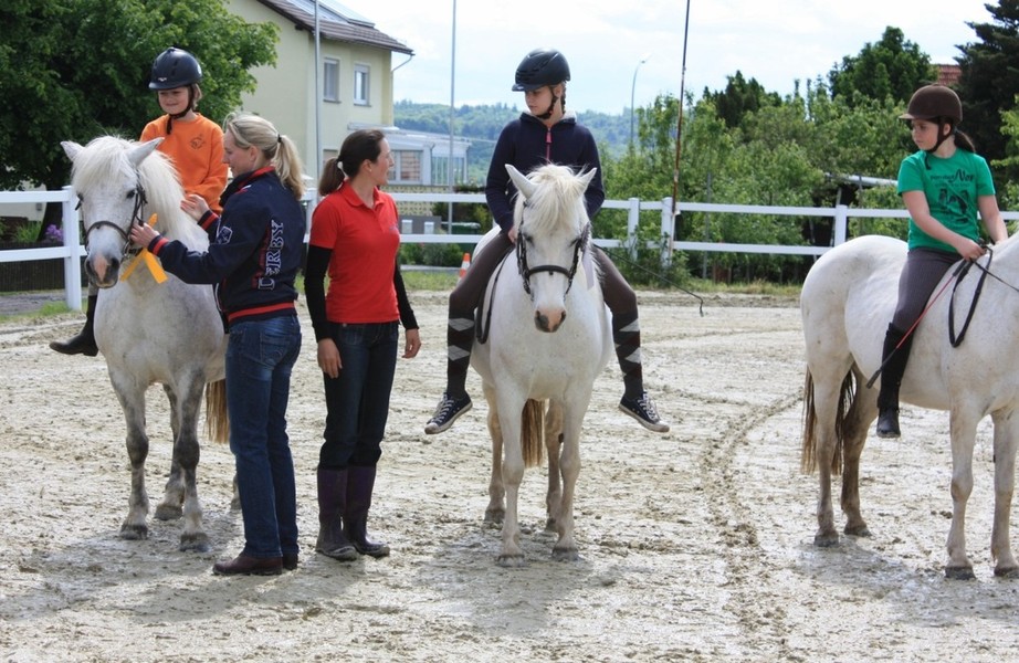 Beim anschließenden Reiterwettbewerb beurteilten die Richterinnen Irina Seib und Patricia Semmel Sitz und Einwirkung der jungen Reiter. In dieser Gruppe gab es zwei Sieger, Max Gran auf Daisy und Anna Stöck auf Maiglöckchen. Platz zwei belegte Juliana Stolberg auf Natascha gefolgt von Jella Kraft auf Sheila.