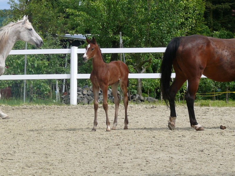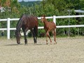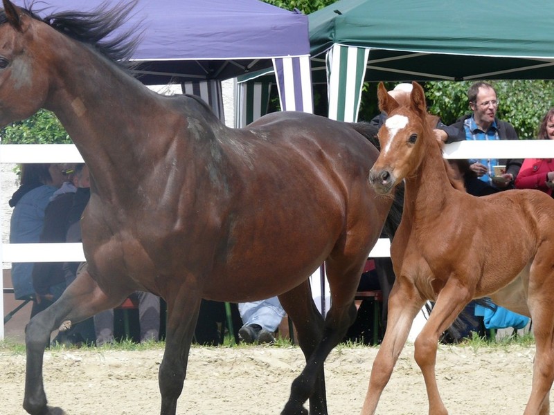 Bei der Fohlenschau wurden die diesjährigen Fohlen der Familie Nos vorgestellt. Die früheren Turnierpferde der Töchter Sylvia und Stefanie sind jetzt in der Zucht und präsentierten ihren Nachwuchs, der von namhaften Hengsten abstammt.