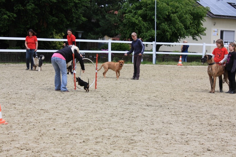 Die Hundefreunde kamen beim Hundewettbewerb auf ihre Kosten. Wenn der Hund nicht durch den Tunnel wollte, musste es Frauchen machen was die Zuschauer zum Lachen brachte.