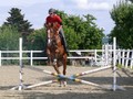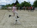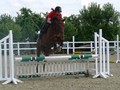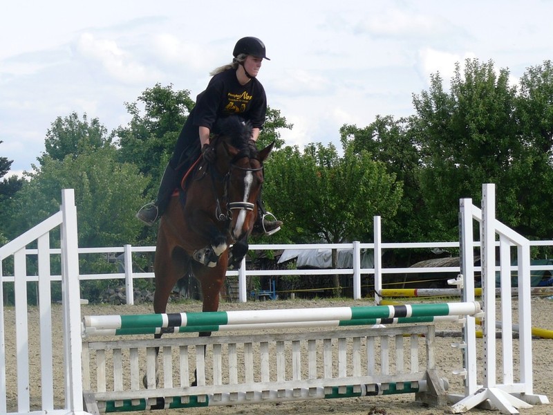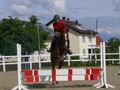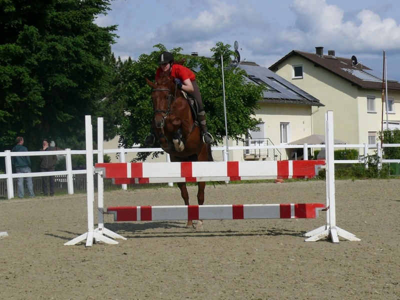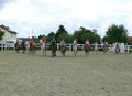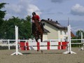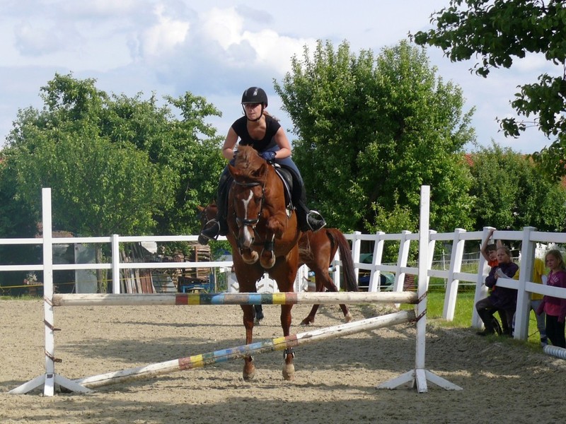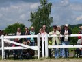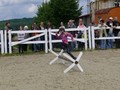 Den Abschluß bildeten zwei Springvorführungen. Zuerst zeigten Sylvia Nos auf Cabardina, Stefanie Nos auf Celebration, Michelle Reißky auf Jägermeisterin und Chistin Klarmann auf Mira unter der Anleitung von Patricia Semmel wie ein Springpferd auf das Überwinden eines Parcours vorbereitet wird. Danach versuchten sich einige Kinder und Jugendliche beim Hochsprungwettbewerb ohne Pferd. Hier siegte Joscha Klarmann der 1,30m überwand.