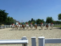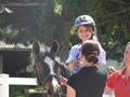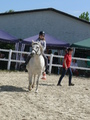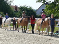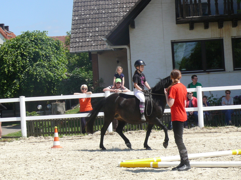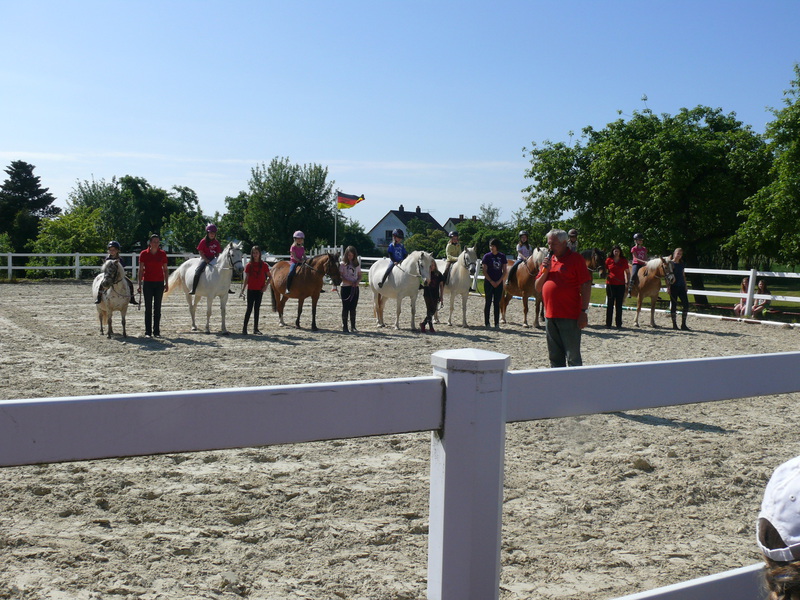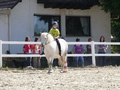 Als nächstes folgte ein Reiterwettbewerb. Die Reiterinnen zeigten ihr Können im Schritt und Trab. Außerdem mußten sie eine Volte reiten. In dieser Prüfung siegte Mia Weidenhaus auf Maiglöckchen vor Lucia Elsner auf Jamaika und Sophia Suhl auf Jinka.