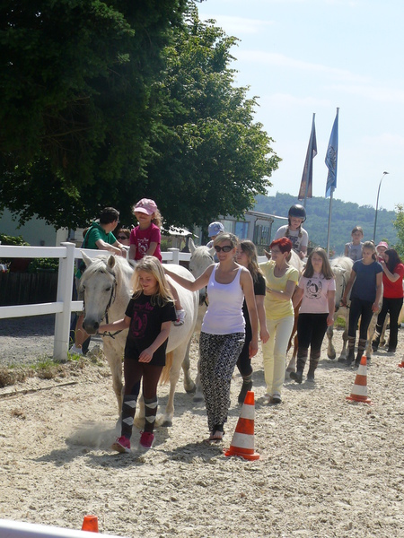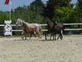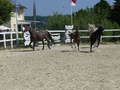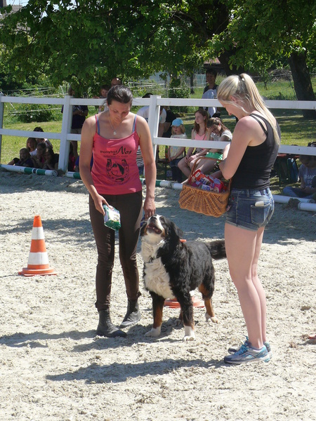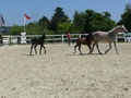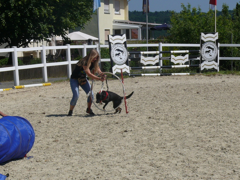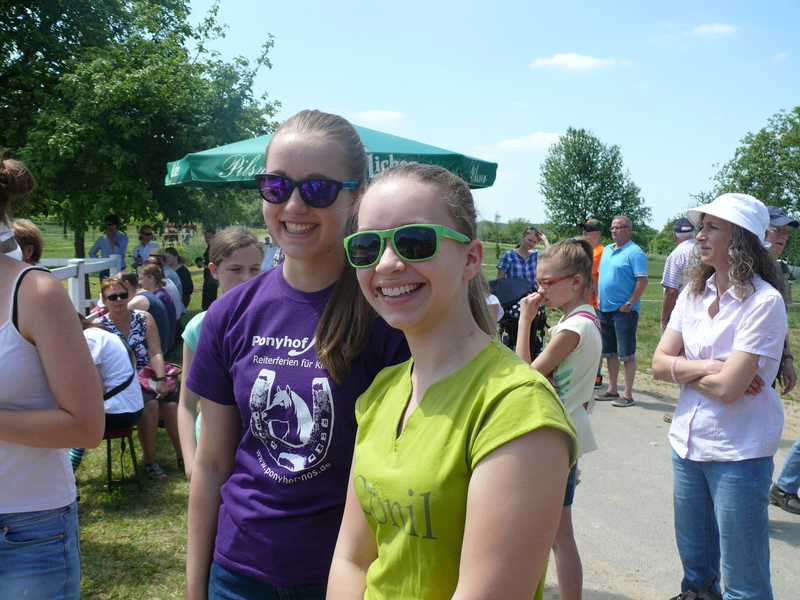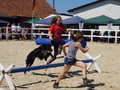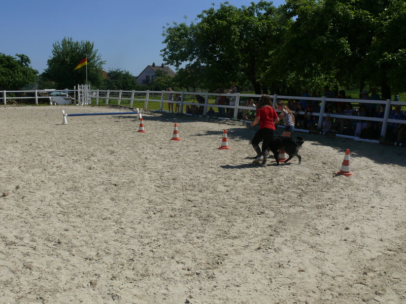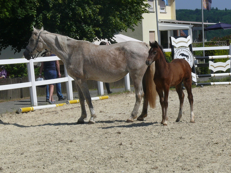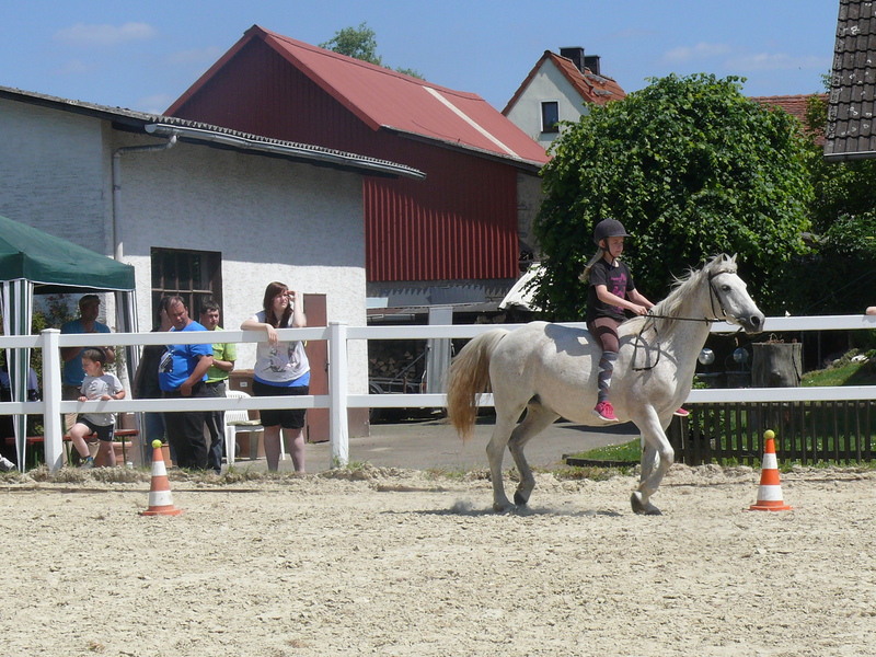 Die jüngsten Reiterinnen und Reiter zeigten anschließend zum Fliegerlied, dass sie sogar schon freihändig reiten können. Marie und Elisabeth Wäß mit ihrem Hund „Socke“ siegten im Hundesportwettbewerb. Danach konnten die Besucher zwei Fohlen mit ihren Müttern, ehemals Erfolgspferde von Sylvia und Steffi Nos, bewundern.
