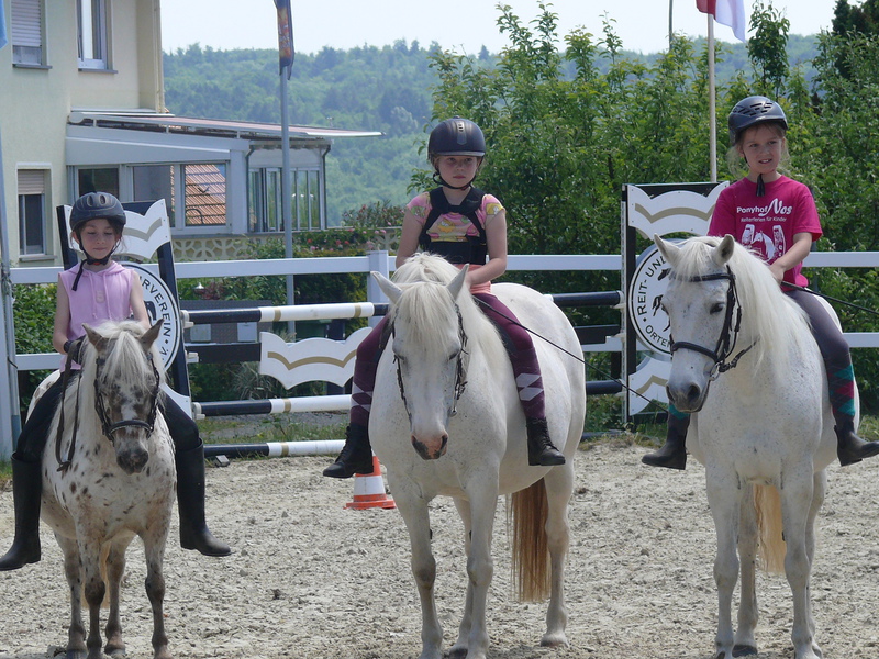 Zu Beginn wurde ein Führzügelwettbewerb ausgetragen. Hierbei beurteilten die Richterinnen Patricia Semmel und Sina Kocher Sitz und Einwirkung der jungen Reiterinnen. Ihre Ponys wurden zwar am Führzügel geführt aber die Kinder mußten die verschiedenen Aufgaben alleine ausführen. Hier wurde Hanna Gambach mit dem Siegpokal belohnt, Alena Kranisch und Leni Weis erhielten ebenfalls einen Pokal für den zweiten und dritten Platz.