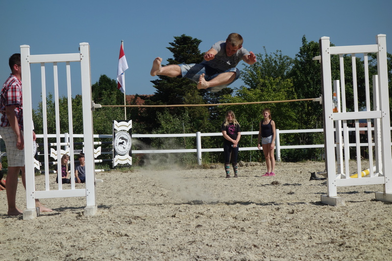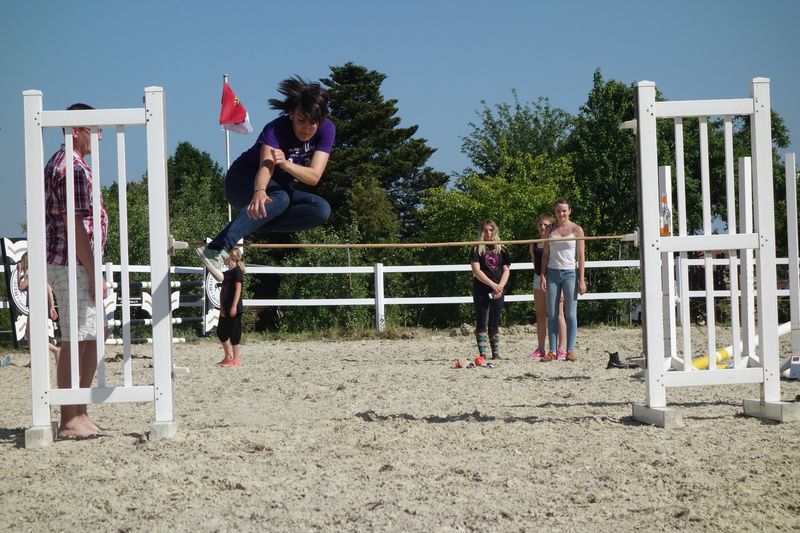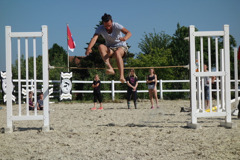 Im anschließenden Hochspringen zeigten dann spontane Zuschauer, dass man auch ohne Pferd hoch springen kann. Am höchsten überwand Joscha Klarmann die Stange, die bei 1,50 m lag.