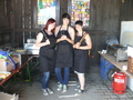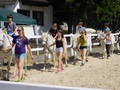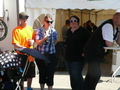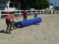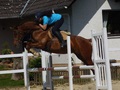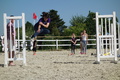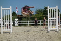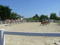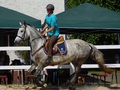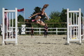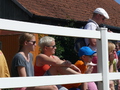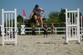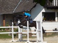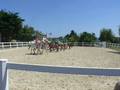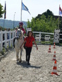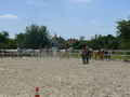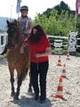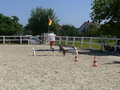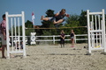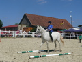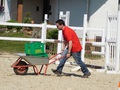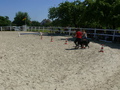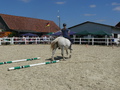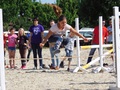 Zum Abschluß wurde gesprungen. Zuerst zeigten Sylvia Nos auf Cabardina, Steffi Nos auf Celestia und Christin Klarmann auf Contina wie man sein Pferd für einen Wettbewerb vorbereitet. Beim „Jump and Drive“ mußten die Reiterinnen einen Springparcours schnell und fehlerfrei überwinden bevor die Partner mit einer Schubkarre eine Strecke bewältigten.