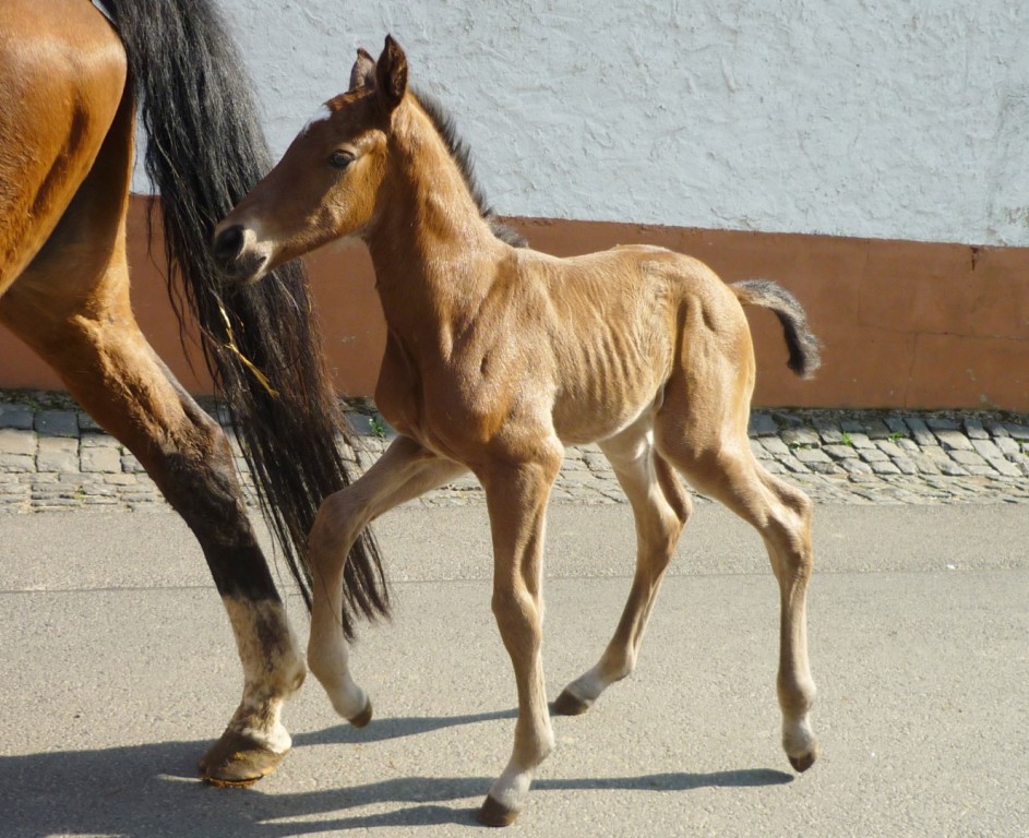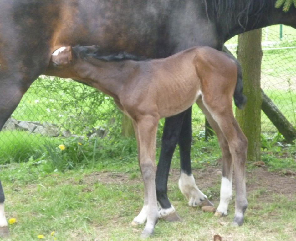 Langbeiniges Hengstfohlen von Clarimo x Cambridge x Carthago